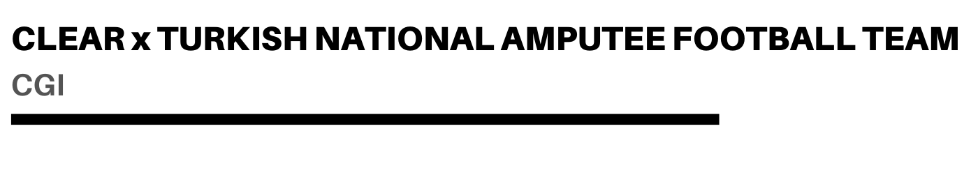 Celebrate the spirit of resilience with the collaboration between CLEAR and the Turkish National Amputee Football Team. In this project, we capture the essence of teamwork, determination, and the power of sportsmanship with full CGI. Through vivid imagery and storytelling, we showcase the partnership between CLEAR and the Turkish National Amputee Football Team, emphasizing the shared values of strength and perseverance.